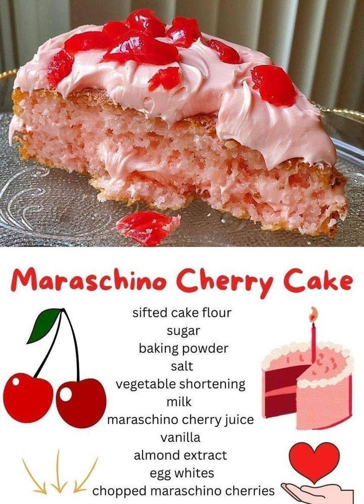 Maraschino cherry cake made from scratch with frosting on Valentine’s Day