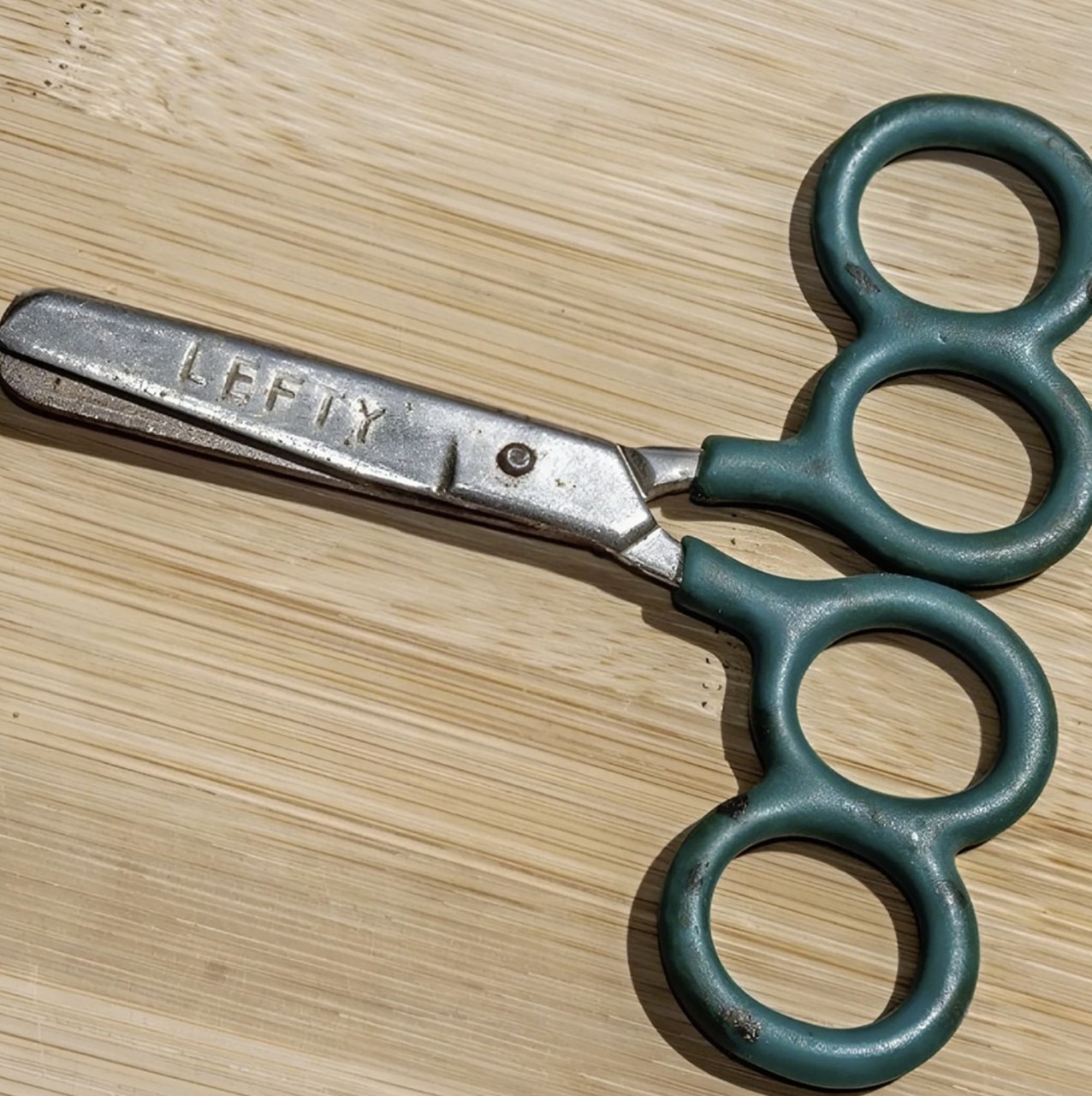 When a friend received a gift from her grandmother for the birth of her baby, she wasn’t expecting to find… a pair of scissors. But not just any scissors. These seemed to come from another era, with four rings for the fingers and a small engraved inscription: “LEFTY.”