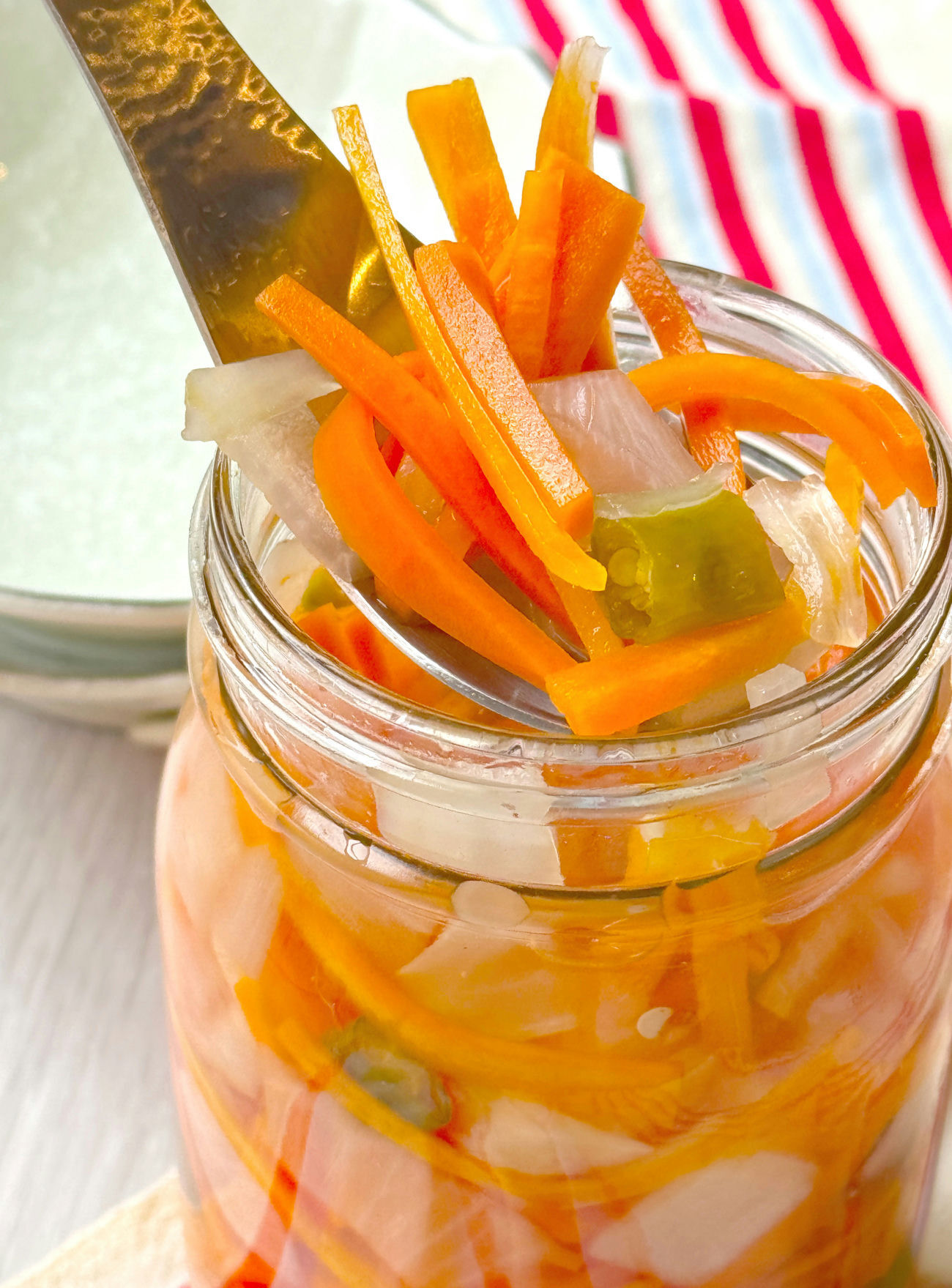 These Spicy Southern Pickled Carrots are a vibrant, tangy, and subtly fiery condiment perfect for adding a zesty kick to any meal. Shredded carrots, onions, and spicy peppers are brined in a sweet and sour vinegar solution, creating a crisp and flavorful pickle that’s easy to make and keeps well in the fridge.