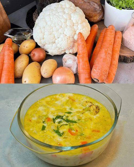 Warm up with a comforting and creamy Cauliflower Soup, a delicious blend of cauliflower, carrots, onions, and potatoes, all brought together with rich milk and aromatic seasonings. Topped with roasted cauliflower for an added depth of flavor, this soup is perfect for cozy dinners or as a comforting lunch.